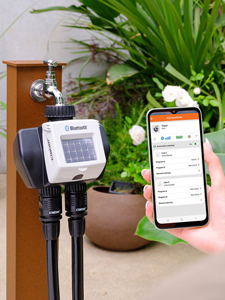 Prva krmilna ura, ki jo v celoti poganja sončna energija. Zelo enostavno programiranje z aplikacijo myAquaSolar. Popolnoma vodotesna in odporna na vremenske vplive. Že opremljena za enostavno povezavo s senzorjem za dež prek kabla; senzor v primeru dežja prekine program v teku in ga znova zažene, ko dež poneha.