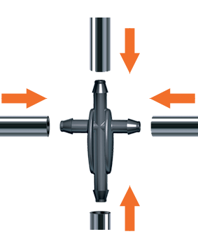 Popolna kakovostna rešitev iz najbolj celovite ponudbe pripomočkov za namakanje na trgu. Za namakalne sisteme, ki jih domači mojstri in vrtnarski navdušenci ustvarjajo sami. Omogoča združitev štirih koncev razvodne cevi.