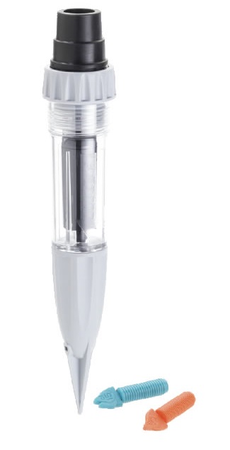 Samodejni kapljalnik za lončnice. Nov koničasti adapter je primeren za navadne plastenke do 2 litra. V kompletu z dvema šobama (10 cl in 15 cl). Konico enostavno zapičite v zemljo v bližino rastlinskih korenin. Izdelek je mogoče pregledati in oprati pod tekočo vodo.