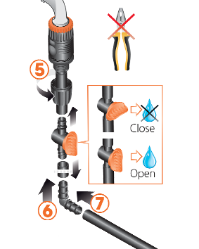 Priključek za pipo, prožna cev, spojke. zmanjševalec pritiska, nastavljivi kapljalniki: vse kar potrebujete za enostavno ustvarjanje lastnega kapljičnega sistema za lončnice, ne da bi za to potrebovali orodje. Količino vode, ki se dovaja k posamezni rastlini, lahko nastavljate. Idealen set za "naredi si sam" projekte ali kot darilo.