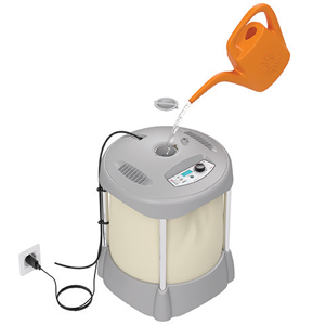 Distributer vode z vgrajeno krmilno uro in črpalko omogoča ustvarjanje lastnega kapljičnega sistema za do 20 lončnic. Primeren je tako za sobne rastline kot tudi za rastline na terasah in balkonih. Sistem se lahko napaja prek električnega omrežja s priloženim USB adapterjem ali prek dveh akumulatorskih AA 1,2V NiMH baterij, min. 2000 mAh (nista priloženi). Zložljiv rezervoar za vodo je izdelan iz debele PVC plastike in ima prostornino 30 litrov. Polnjenje je omogočeno skozi priročno odprtino na vrhu. Za sestavljanje ogrodja ne potrebujete nobenega orodja.