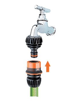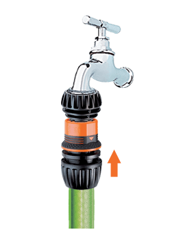 Hitra spojka za vrtne cevi s 1/2" (not. Ø 12 mm - zun. Ø 17 mm), 5/8" (not. Ø 14 mm - zun. Ø 19 mm) ali 3/4" premerom (not. Ø 19 mm - zun. Ø 25 mm). Posebna, z gumo prevlečena površina omogoča popoln oprijem. Nerjaveča (brez kovinskih delov) ter odporna na udarce, UV žarke in visok vodni pritisk, vse do 40 barov.