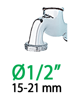 Univerzalni priključek za pipo za "Quick-Click®" povezavo hitre spojke na 1/2" (15-21 mm) ali 3/4" (20-27 mm) pipo z moškim navojem. Enostavna namestitev na pipo in popolno tesnjenje. Vključuje tesnilo.