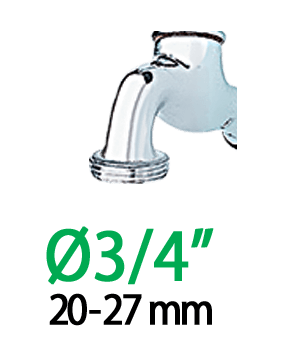 Univerzalni priključek za pipo za "Quick-Click®" povezavo hitre spojke na 3/4" (20-27 mm) ali 1" (26-34 mm) pipo z moškim navojem. Enostavna namestitev na pipo in popolno tesnenje. Vključuje tesnilo.
