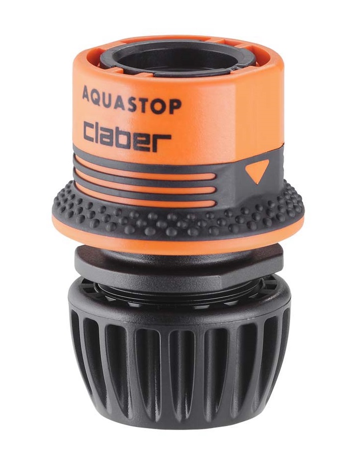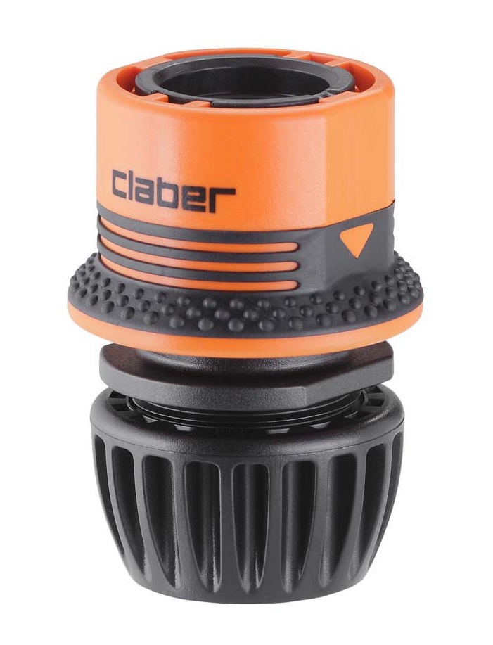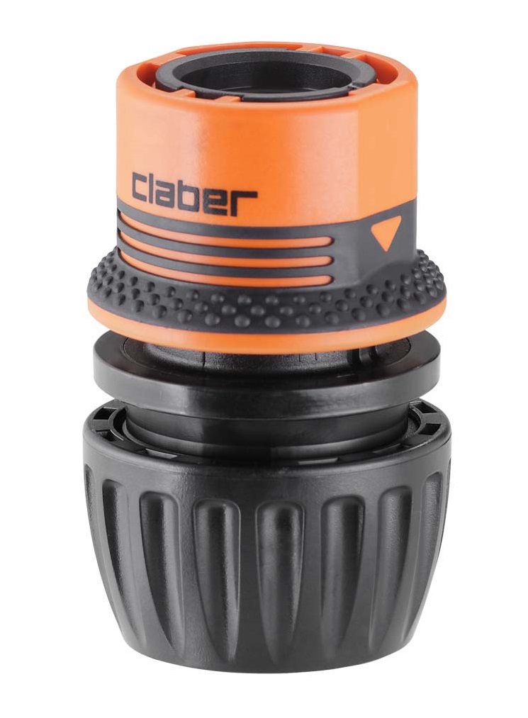Hitra spojka za vrtne cevi s 1/2" (not. Ø 12 mm - zun. Ø 17 mm) ali 5/8" (not. Ø 14 mm - zun. Ø 19 mm) premerom. Površina je prevlečena s posebno gumo, kar omogoča popoln oprijem. Nerjaveča (brez kovinskih delov) ter odporna na udarce, UV žarke in visok vodni pritisk, vse do 40 barov. Vključuje avtomatski ventil za zaustavljanje vode. Namesti se na koncu cevi, da prepreči izlivanje vode po končani uporabi.