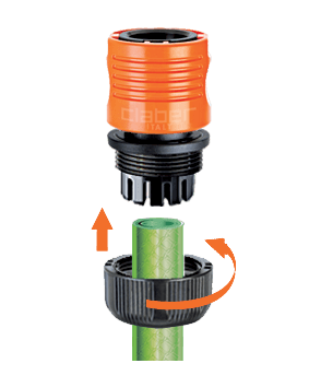 Hitra spojka za hitro in popolno povezavo. Izdelek je rezultat Claber® raziskav in izkušenj. Spojka je popolnoma nerjaveča (ne vsebuje kovinskih delov), odporna na udarce, zunanje vplive in UV žarke ter odporna na zelo visoke vodne pritiske: do 40 barov, kar je precej večji pritisk, kot je v običajnih domačih vrtnih napeljavah. Notranja vzmet je patentirana, izjemno odporna in z dolgo življenjsko dobo.