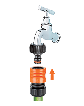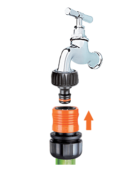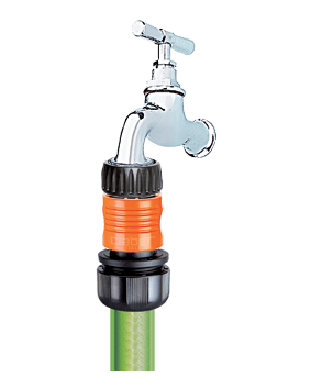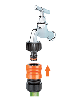 Vse kar potrebujete za povezavo cevi na pipo. Priključek za pipo namestite brez uporabe orodja in zagotavlja odlično povezavo. Hitra spojka je popolnoma nerjaveča (ne vsebuje kovinskih delov), odporna na udarce, zunanje vplive in UV žarke ter odporna na zelo visoke vodne pritiske: do 40 barov, kar je precej večji pritisk, kot je v običajnih domačih vrtnih napeljavah. Notranja vzmet je patentirana, izjemno odporna in z dolgo življenjsko dobo.