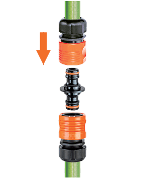 Vse kar potrebujete za povezavo dveh cevi skupaj, da boste lahko dosegli vse kotičke vašega vrta. Vse priključke namestite brez uporabe orodja in zagotavljajo odlično povezavo. Hitri spojki sta popolnoma nerjaveči (ne vsebujeta kovinskih delov), odporni sta na udarce, zunanje vplive in UV žarke ter na zelo visoke vodne pritiske: do 40 barov, kar je precej večji pritisk, kot je v običajnih domačih vrtnih napeljavah. Notranja vzmet je patentirana, izjemno odporna in z dolgo življenjsko dobo.