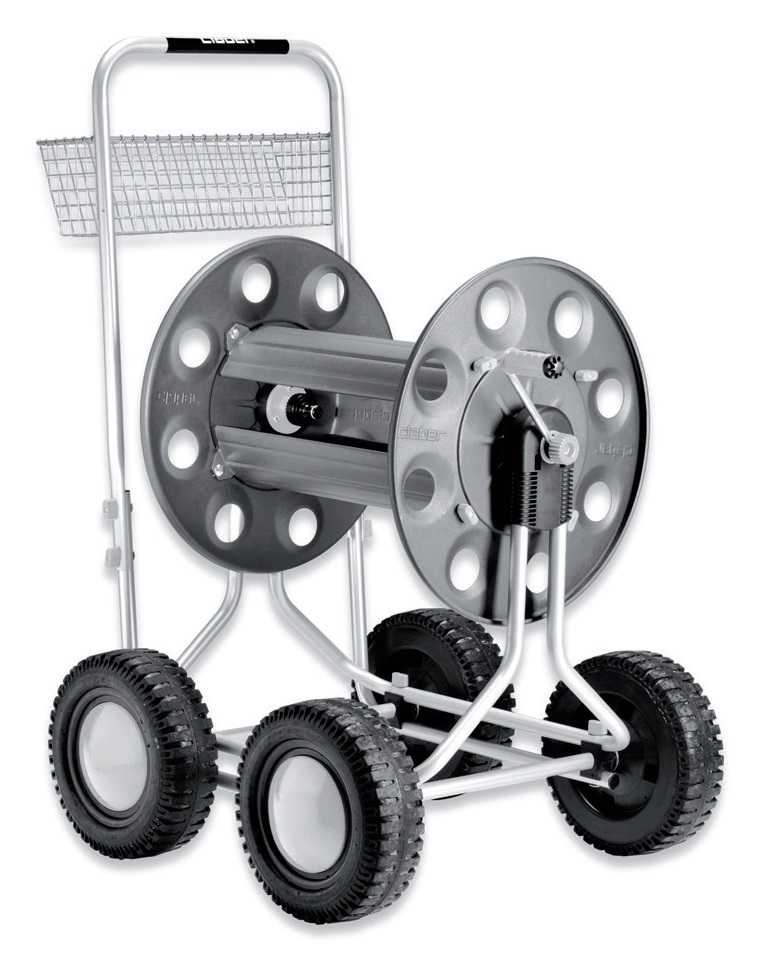 V celoti kovinski voziček za cev zagotavlja popolno vrtenje bobna, saj ima poseben Silent Block mehanizem. Prevlečen je z epoksi smolo, ki ščiti pred rjo. Opremljen je z dvema različicama hitre spojke, za cevi vseh premerov. Kolesa so prevlečena z gumo za enostavno glibanje po vseh tipih terenov, tudi kadar je voziček polno obremenjen. Idealen je za uporabo v velikih vrtovih, saj nanj lahko navijete do 165 m 1/2" vrtne cevi.