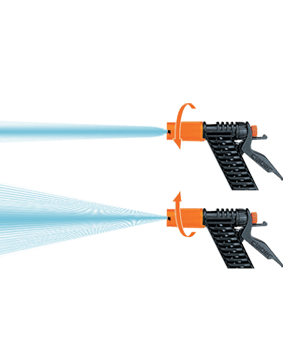 Praktična, kompaktna razpršilna pištola, izdelana posebej za pranje in čiščenje vseh zunanjih površin. Izkorišča čistilno moč vode. Ergonomična oblika zagotavlja enostavno uporabo in optimalen oprijem tudi z mokrimi rokami. Enostaven in praktičen sistem za nastavljanje curka vode.