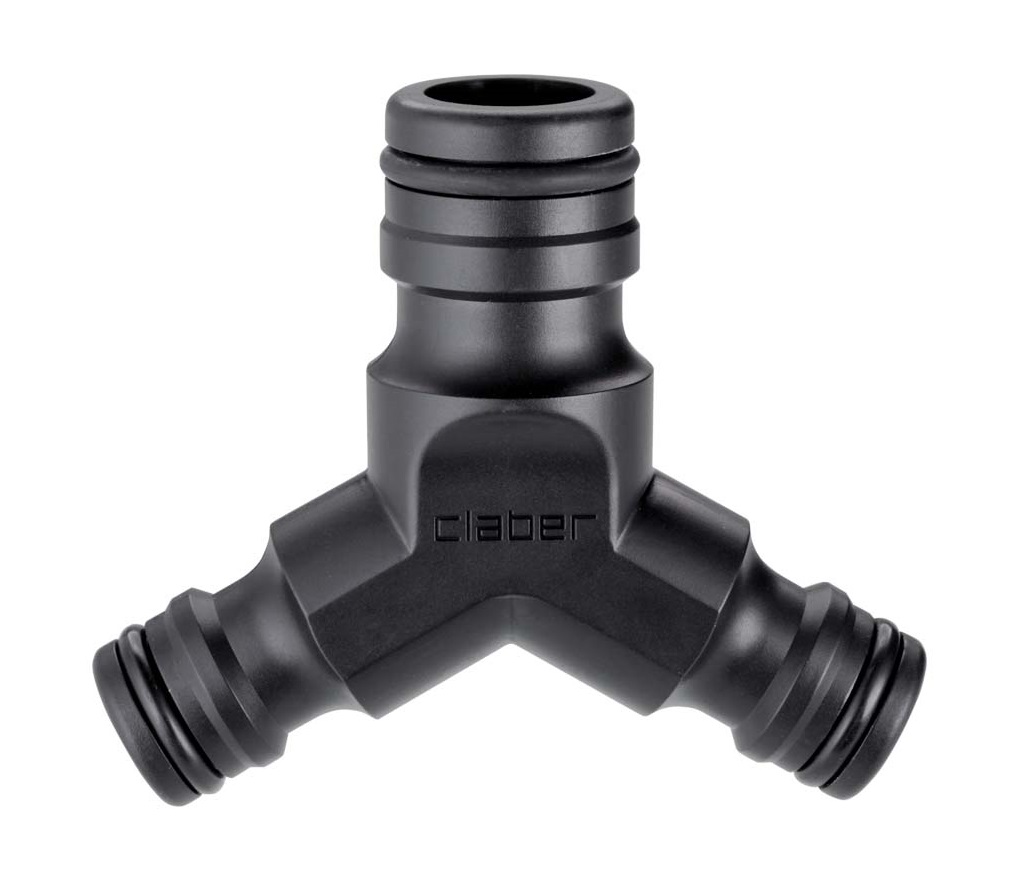 Za ločevanje in razdelitev vodne linije z večjim premerom na dve različni liniji klasičnih vrtnih cevi. “Quick-Click®” spajanje z eno hitro spojko Aquamaster Max-Flow in dvema običajnima hitrima spojkama “Quick-Click®”.