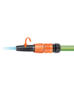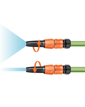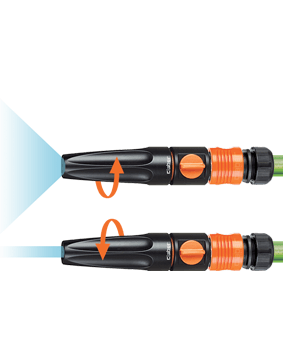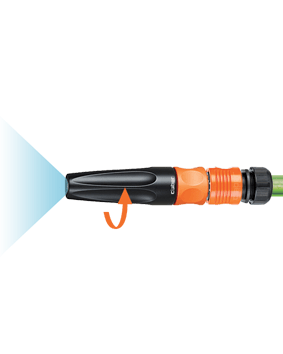Razpršilec z nastavljivim vodnim curkom: zaprt ali odprt (jet ali razpršeni curek). Curek uravnavate z vrtenjem ergonomskega nastavka na vrhu razpršilca.