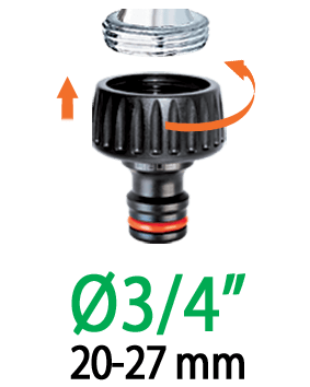 - 3/4" (20-27 mm) priključek za pipo z reducirko iz 3/4" na 1/2" (15-21 mm),