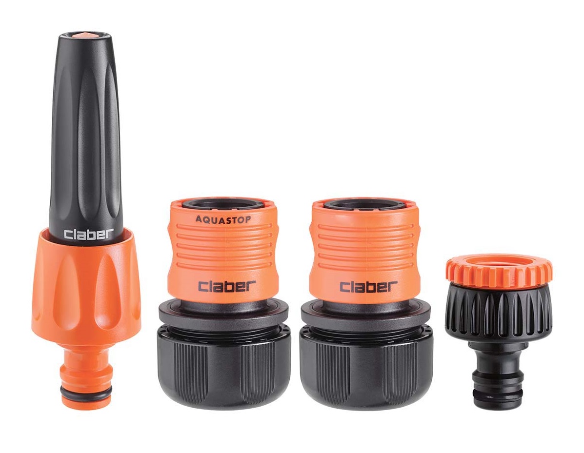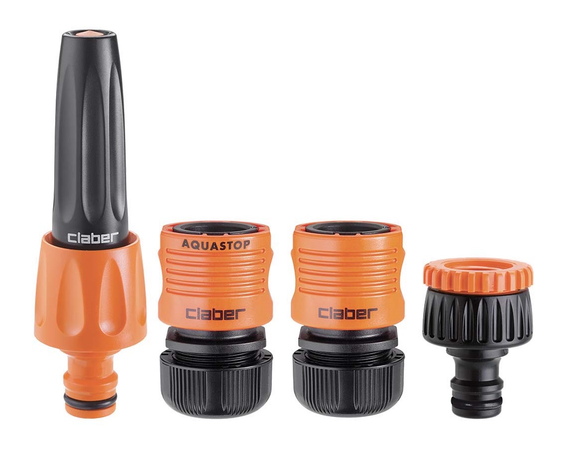 Vse kar potrebujete za zalivanje: edino kar manjka je vrtna cev! Vsebuje kompakten in praktičen razpršilec za vodo, ki omogoča enostavno prilagoditev curka, od koncentriranega curka do širokega škropljenja, 3/4" priključek za pipo z reducirko iz 3/4" na 1/2", ki ga je enostavno namestiti brez uporabe orodja in je popolnoma vodotesen, ter dve hitri spojki, pri čemer je ena klasična, druga pa z ventilom Aquastop, ki vam omogoča hitro povezavo ali odstranitev razpršilca, ne da bi za to morali zapreti vodo.