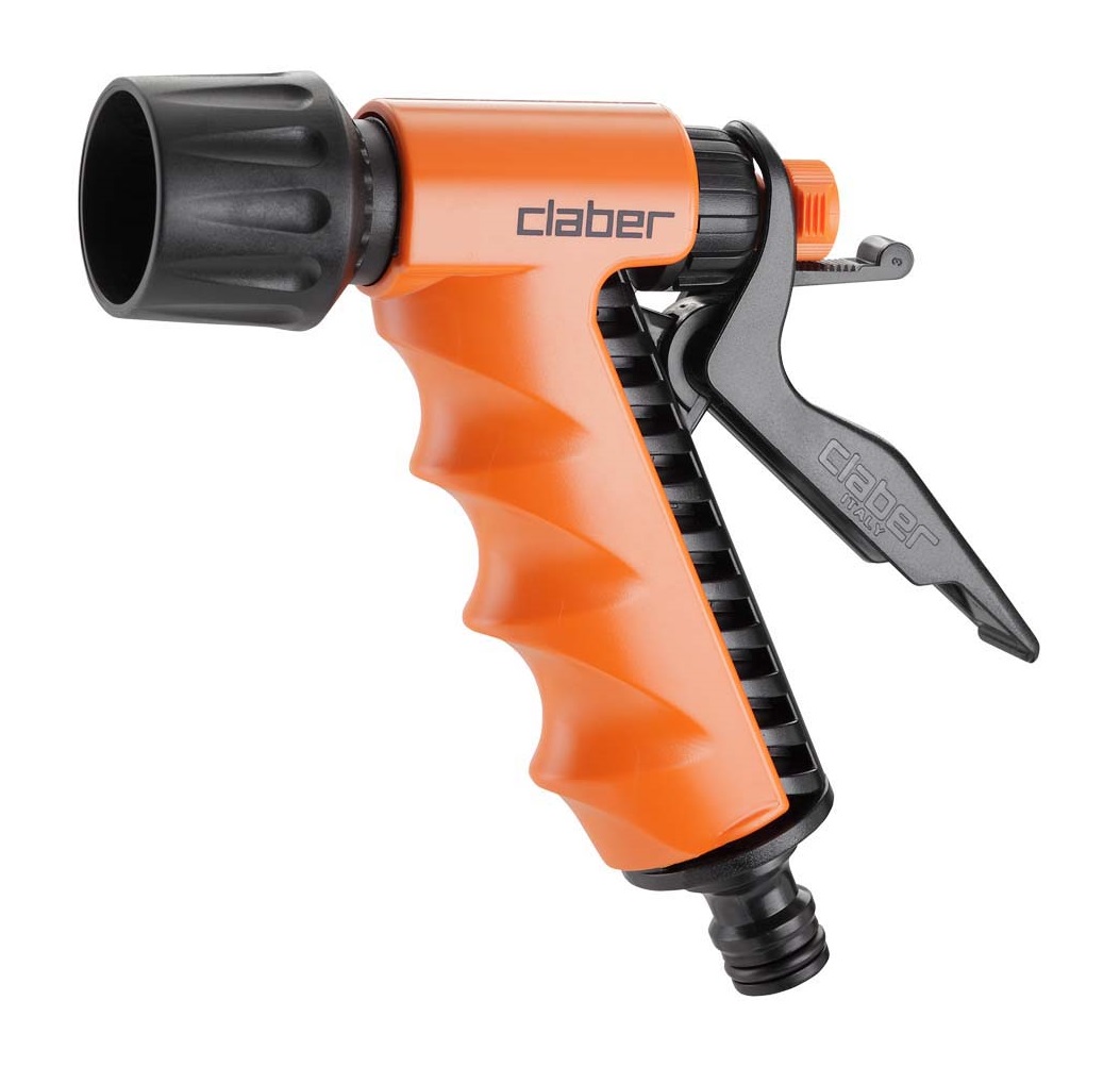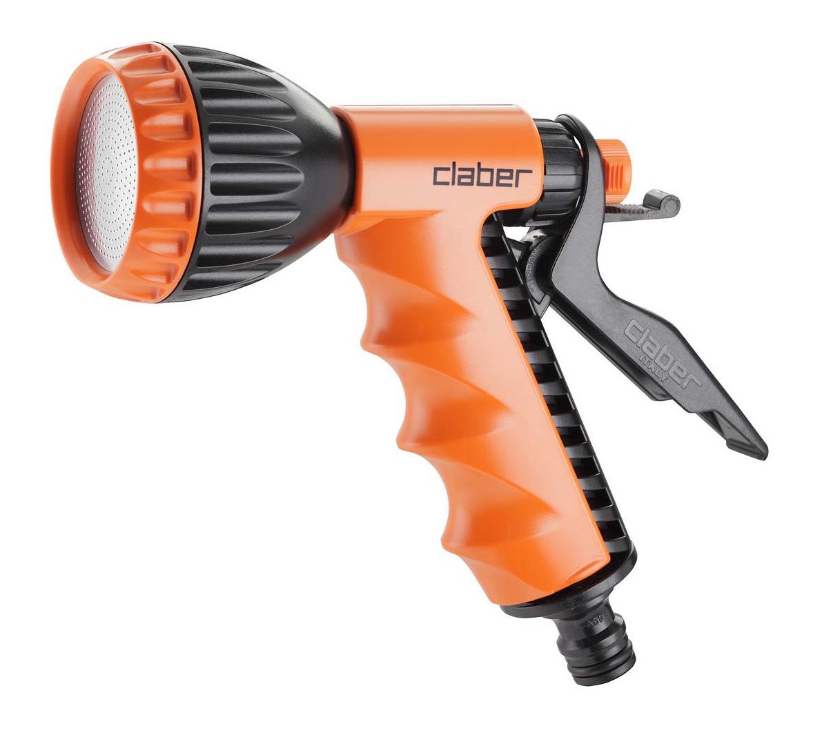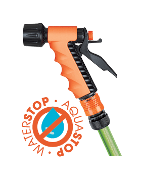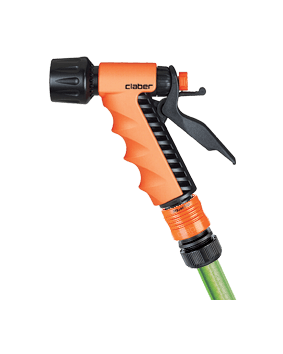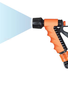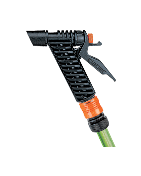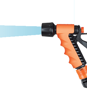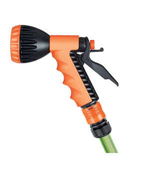 Razpršilna pištola za vodo profesionalne kakovosti, ki zadosti vsem potrebam po zalivanju. Kompaktna in trdna, enostavno in udobno rokovanje. Omogoča nastavljanje vodnega curka v vsakem trenutku in zataknitev izbranega načina pršenja, kjer s posebnim mehanizmom zaklenete položaj nastavitvene ročice, kar preprečuje utrujenost rok, zlasti v primeru daljše uporabe.