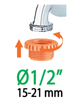 - 3/4" (20-27 mm) priključek za pipo z reducirko iz 3/4" na 1/2" (15-21 mm),