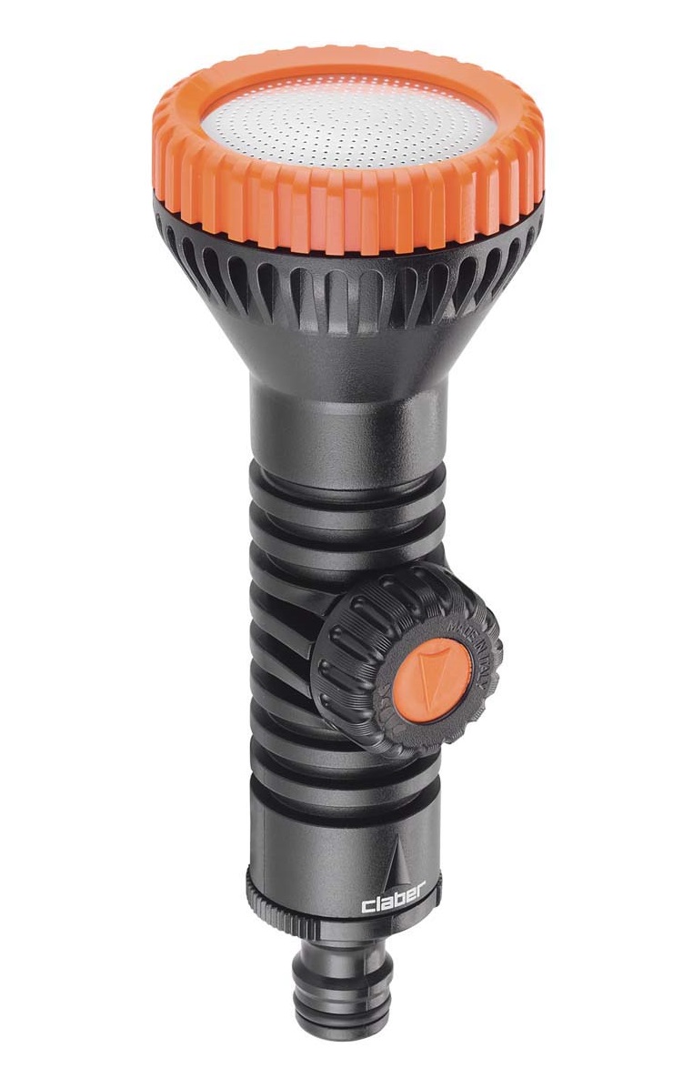 Tuš nastavek za pršenje z nedrsečim ročajem je idealen za nežno in natančno zalivanje predvsem rastlin, ki jih z običajnimi nastavki in pripomočki za zalivanje težko dosežete. Trdna, enostavna in udobna za uporabo. Vgrajeni ročni ventil omogoča prilagoditev vodnega curka v vsakem trenutku. Njegova oblika je idealna za neposredno zalivanje posameznih lončnic ali rastlin v cvetlični gredi, poleg tega pa nastavek ne utrudi roke tudi v primeru daljše uporabe.