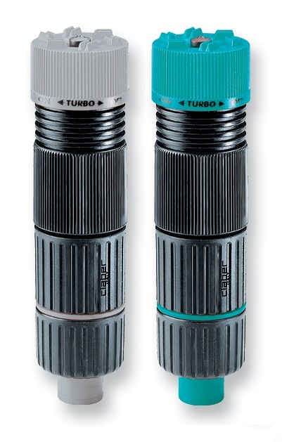 "Aquamaster®" turbo razpršilna šoba za neposredno namestitev na 3/4" in 1" vrtne cevi. Večnamenska šoba za racionalno porabo vode. Primerna za visok vodni pretok in pritisk. Neodvisna kontrola curka vode, ki sega od popolnoma zaprtega do popolnoma odprtega, omogoča vsestranskost pri distribuciji vode: zalivanje z več vmesnimi različicami, koncentriran curek in curki, ki dosegajo večje razdalje (do 17,5 m).