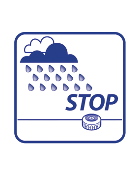 Senzor za dež v primeru dežja samodejno prekine namakalni program v teku in ga znova zažene, glede na nastavljen čas, ko dež poneha. Opremljen s pokrovčkom, ki preprečuje, da bi listi nenamerno padli v senzor, kar zagotavlja največjo zanesljivost delovanja. Zunaj ga enostavno namestite, saj se nahaja na posebnem jeklenem nosilcu. Na krmilno uro se poveže prek radijske frekvence, tako da povezava s kablom ni potrebna. Ker deluje na baterije, tudi povezave na električno omrežje niso potrebne.