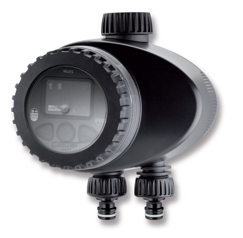 RF daljinski upravljalnik lahko krmili do 2 kontrolni enoti. Ima 5 gumbov za enostavno programiranje. Vse potrebne informacije so jasno prikazane na velikem zaslonu z uporabo številk in simbolov. Za vsako enoto lahko nastavite do 2 dnevna programa s 4 začetki na dan. Omogočeno je tedensko programiranje, kjer lahko določene dneve tudi izpustite. Nastavljen program za vsako enoto posebej lahko kadarkoli pogledate in po potrebi izbrišete. RF daljinski upravljalnik vključuje tudi indikator stanja baterij za vsako povezano enoto (RF kontrolno enoto ali RF senzor za dež). Deluje na dve 1,5V AAA alkalni bateriji, ki zadostujeta za celotno sezono.